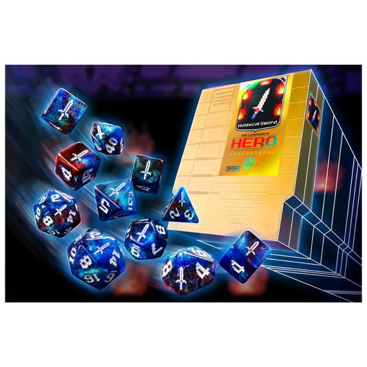 Infinite Black - 1UP Dice - Polyhedral Dice Set - Master Edition Mythical Sword