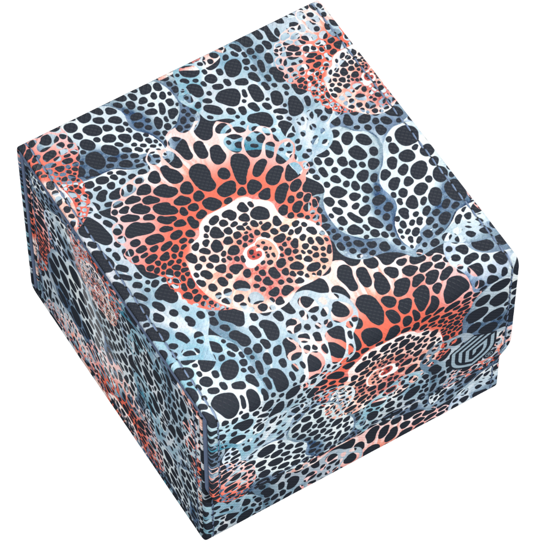 Built with a resilient Xenoskin exterior and plush microfiber lining, the deck box offers robust defense and tactile appeal. The secure magnetic closure ensures your cards stay protected, while the modular format allows integration with other Ultimate Guard accessories. Crafted with sustainability in mind, the Coral Places II collection uses 52 percent recycled materials in its construction and is shipped in plastic-free, eco-friendly packaging printed with soy-based ink.